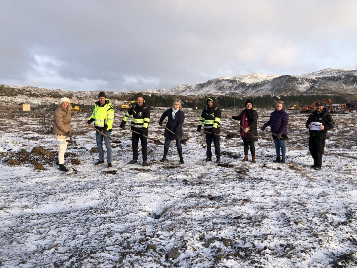 Í vikunni var tekin skóflustunga að tveimur fimm íbúða raðhúsum Bjargs íbúðafélags við Langahraun í Hveragerði.