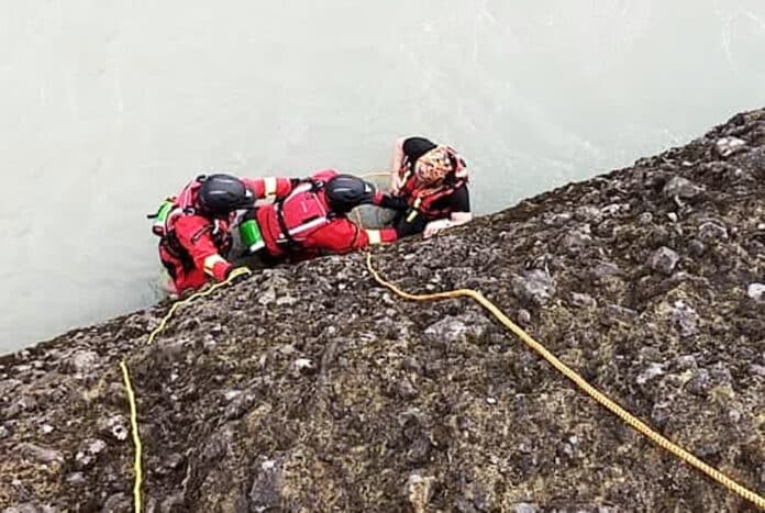 Maðurinn náði landi en háir klettar eru umhverfis ána á þessum slóðum og komst maðurinn ekki upp af sjálfdáðum.