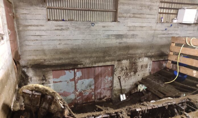 Alls höfðu 22 kindur og hrútar fallið niður um gólfið og tókst að ná átján þeirra upp á lífi, en fjórar höfðu orðið undir og voru án lífsmarks.