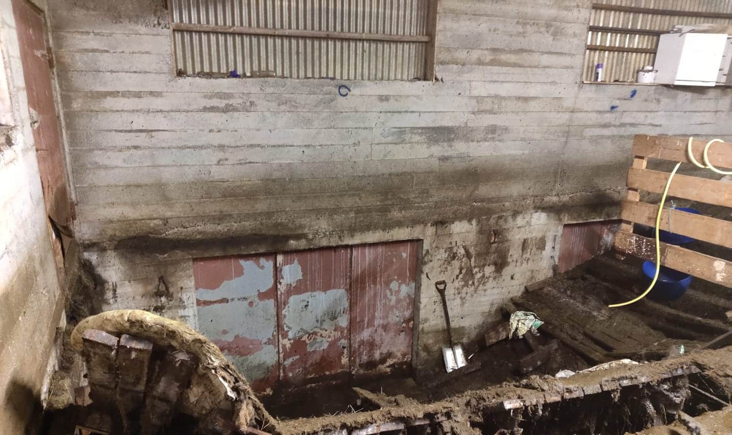Síðastliðinn fimmtudaginn barst Hjálparsveitinni Tintron í Grímsnesi útkall, þar sem gólf hafði gefið sig í fjárhúsi og fé fallið með því ofan í haughús.