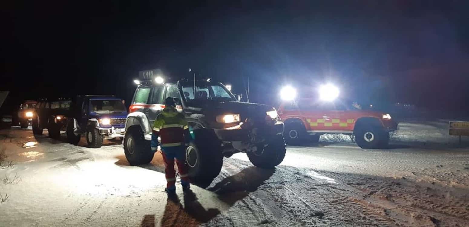 Björgunarsveitir voru komnar að bílunum kl. 00:45 í nótt og þá var hafist handa við að koma þeim á sama stað og í framhaldinu var hópnum fylgt að þjónustumiðstöðinni á Þingvöllum.