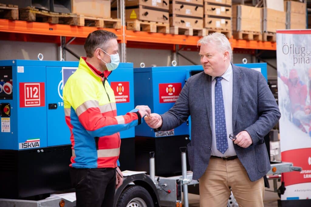 „Færanlegar rafstöðvar munu þétta öryggisnet fjarskipta um land allt. Afhending þeirra er liður í stærra átaki við að stórefla öryggi í fjarskiptum. Við viljum tryggja sem best að ef fárviðri geisar eða hamfarir verða sé til staðar varaafl og nægt rafmagn. Með sameiginlegu átaki Neyðarlínunnar, Mílu og fjarskiptafyrirtækja á síðasta ári hefur grettistaki verið lyft við að bæta varaafl á fjarskiptastöðvum. Núna færum við björgunarsveitunum mikilvægan tækjabúnað til að koma rafmagni aftur á við erfiðar aðstæður. Engum er betur treystandi til þess að taka þetta verkefni að sér en sjálfboðaliðum og starfsfólki hjá Slysavarnafélaginu Landsbjörg,“ segir Sigurður Ingi.