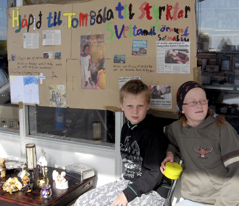 Þau langaði að leggja sitt af mörkum og héldu tombólu til styrktar sveltandi börnum í Sómalíu um töðugjaldahelgina á Hellu.