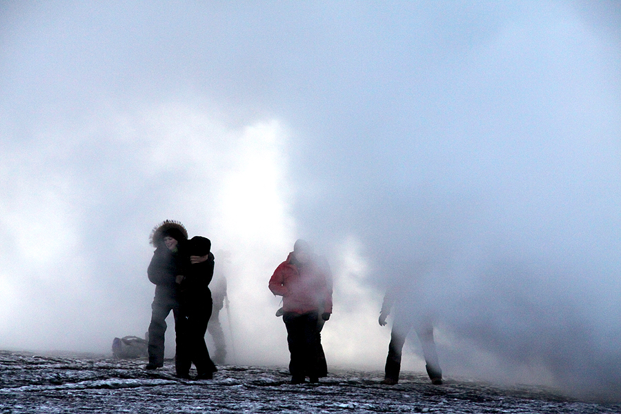 Því er brýnt fyrir þeim sem leggja á ferðir að gosstöðvunum að fara gætilega og virða eins kílómeters bannsvæði við gosstöðvarnar.