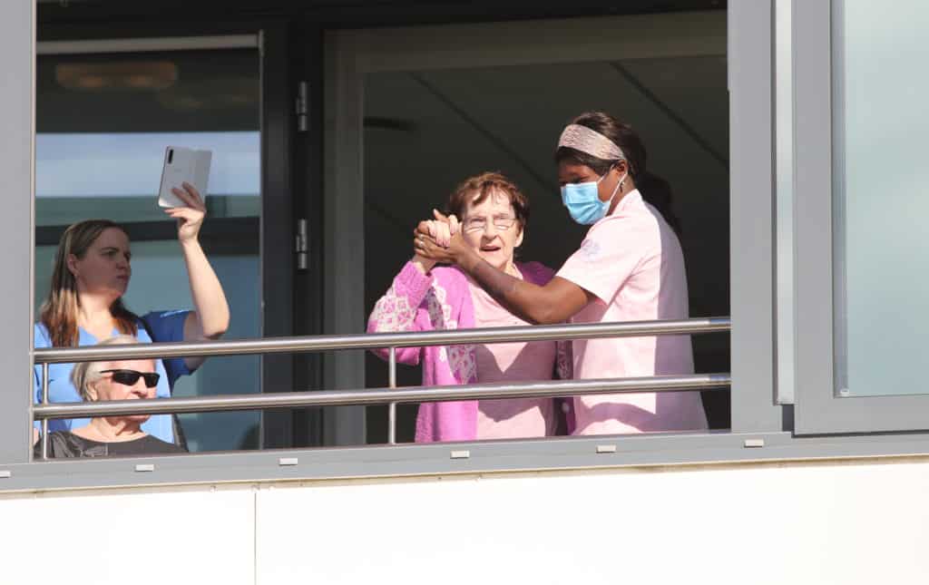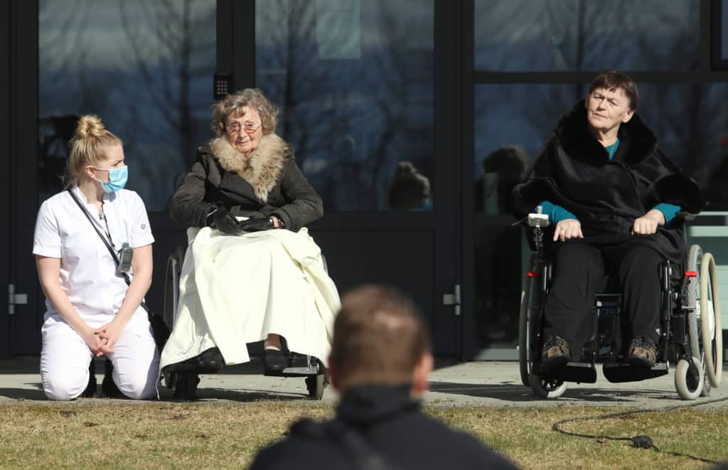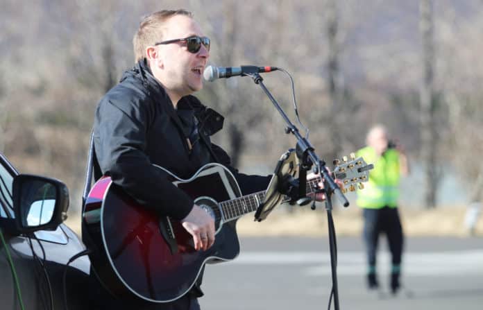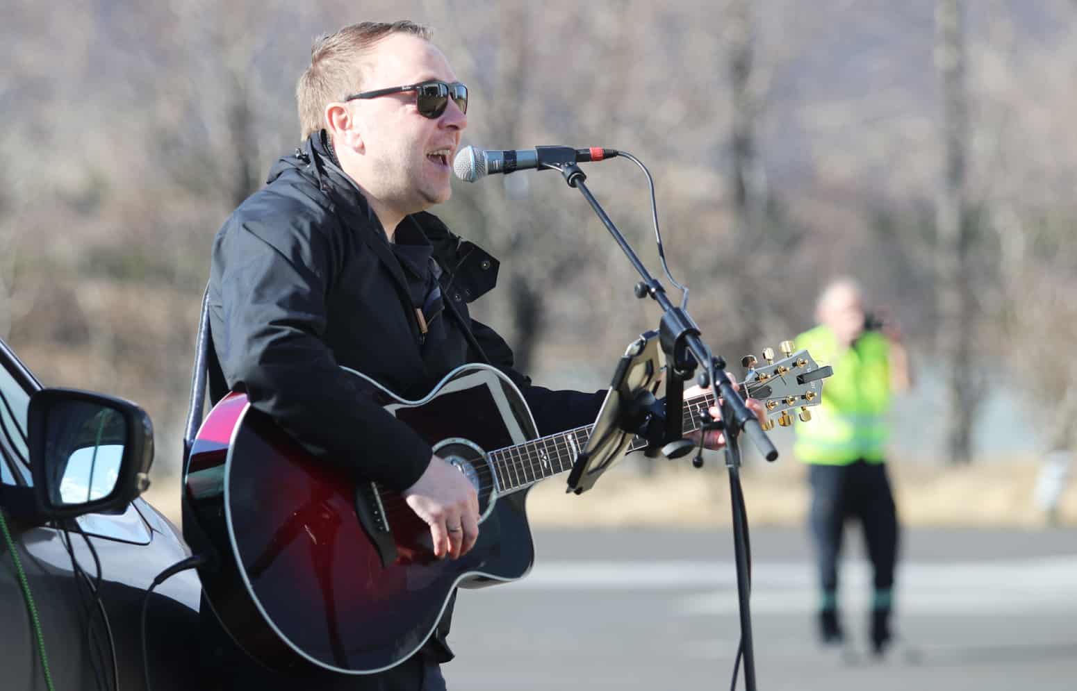 Það var góð stemmning fyrir utan hjúkrunardeildina Ljósheima á Selfossi í dag þegar Gunnar Ólason, söngvari Skítamórals, leit við með gítarinn og spilaði og söng fyrir heimilisfólkið.
