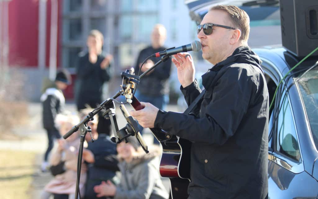 Gleðin skein af hverju andliti á þessum fallega degi en Gunnar spilaði íslensk og erlend dægurlög og þjóðlög sem virtust falla vel í kramið hjá áheyrendum.