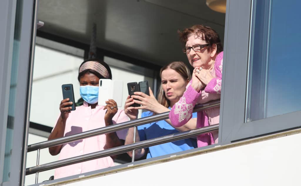 „Móðir mín, Hofdís Bjarnadóttir, býr hérna á Ljósheimum og hún pressaði á mig að gera þetta. Við töluðum um þetta þegar dálítið var liðið af heimsóknarbanninu og svo sá maður að svona viðburðir voru farnir að spretta upp eins og gorkúlur, þannig að ég gat ekki látið mitt eftir liggja og ákvað að kíkja hingað fyrir utan með hljóðfærið,“ sagði Gunnar sem gladdi fleiri en móður sína með þessu uppátæki.