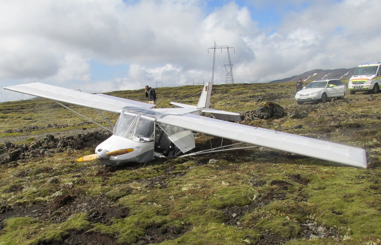Samkvæmt upplýsingum frá lögreglunni á Suðurlandi er talið að vélin hafi orðið bensínlaus og flugmaðurinn þurfti því að nauðlenda.