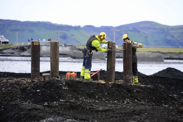 Samhliða þessu verður haldið áfram að reka niður tréstaurana. Þeir eru 11-12 metra langir og eru reknir niður 8-9 metrar þannig að upp úr standa 2,5-3 metrar en brúargólfið mun vera um 4,0 metra yfir vatnsborðinu.