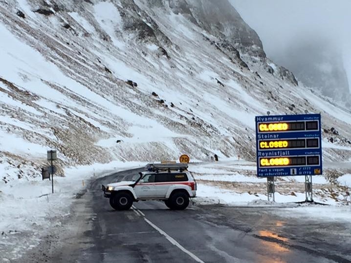 The roads across Hellisheiði and Þrengsli and Kjalarnes on the Ringroad have been closed. Also closed are the roads across Möðrudalsöræfi and Fjarðarheiði.