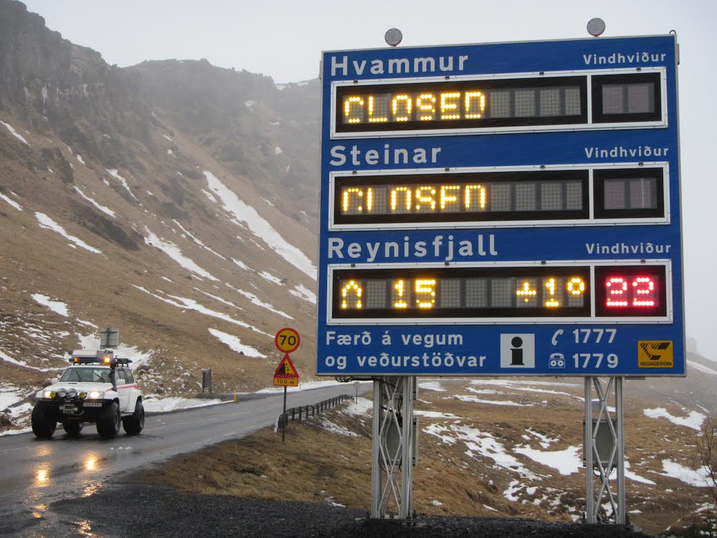 Suðurlandsvegi var lokað í dag við Dalssel, skammt vestan við Markarfljót og einnig vestan við Vík. Vegurinn var opnaður aftur laust eftir kl. 17.
