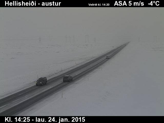Gert er ráð fyrir vaxandi suðaustanátt síðdegis suðvestanlands og hríð og skafrenningi um tíma. Búast má við skafbyl og litlu skyggni á Hellisheiði síðdegis og fram á kvöld.