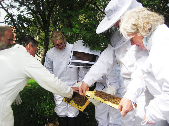 Íslendingar verða æ áræðnari að prófa nýjungar í tengslum við garðrækt og ein sú óvenjulegasta er hunangsframleiðsla með aðstoð býflugna.