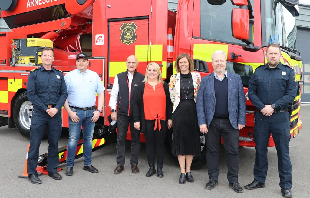 Brunavarnir Árnessýslu tóku í dag formlega í notkun nýjan og glæsilegan stigabíl, sem leysir af hólmi um það bil 40 ára gamlan körfubíl BÁ. Má segja að þarna lyfti BÁ bílaflota sínum inn í nútímann.