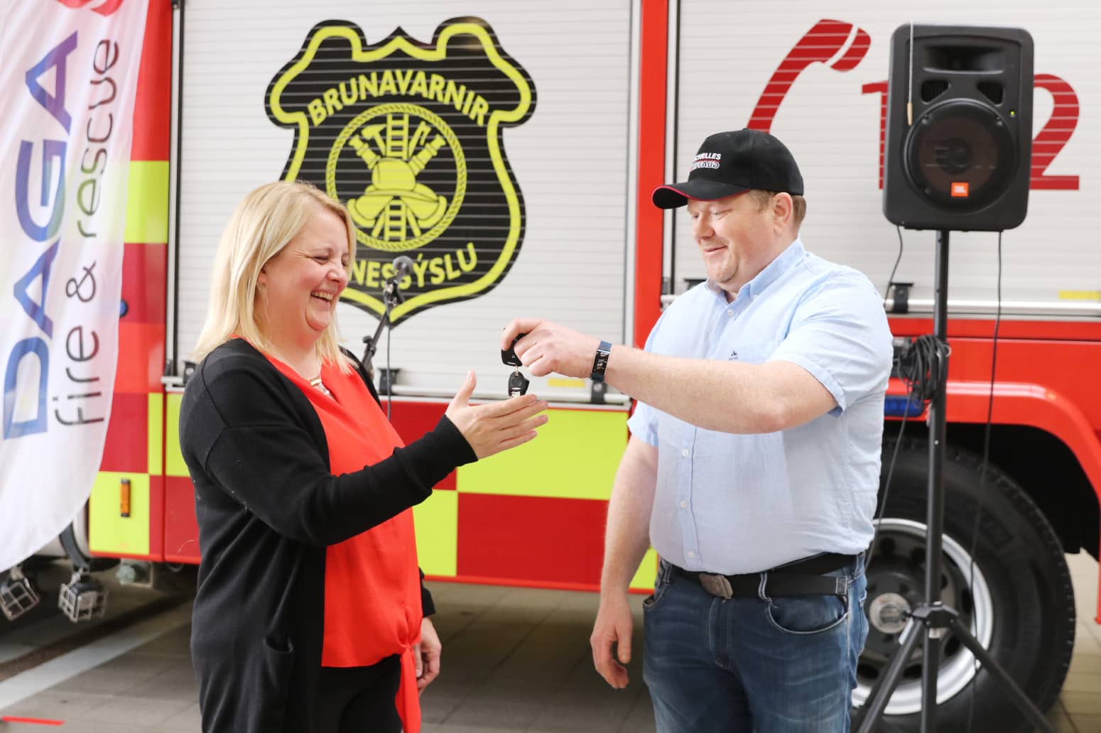 „Það er mikill munur hvað varðar aksturseiginleika og að koma bílnum á staðinn en líka fyrst og fremst hraðinn við að reisa tækið. Þetta er allt orðið tölvustýrt og á meðan menn eru að koma sér fyrir þá er hægt að ýta á einn takka og þá stillir bíllinn sér upp á meðan menn eru að græja aðra hluti. Þennan bíl er hægt að gera björgunarkláran með stigann í efstu stöðu á 90 sekúndum,“ segir Pétur.