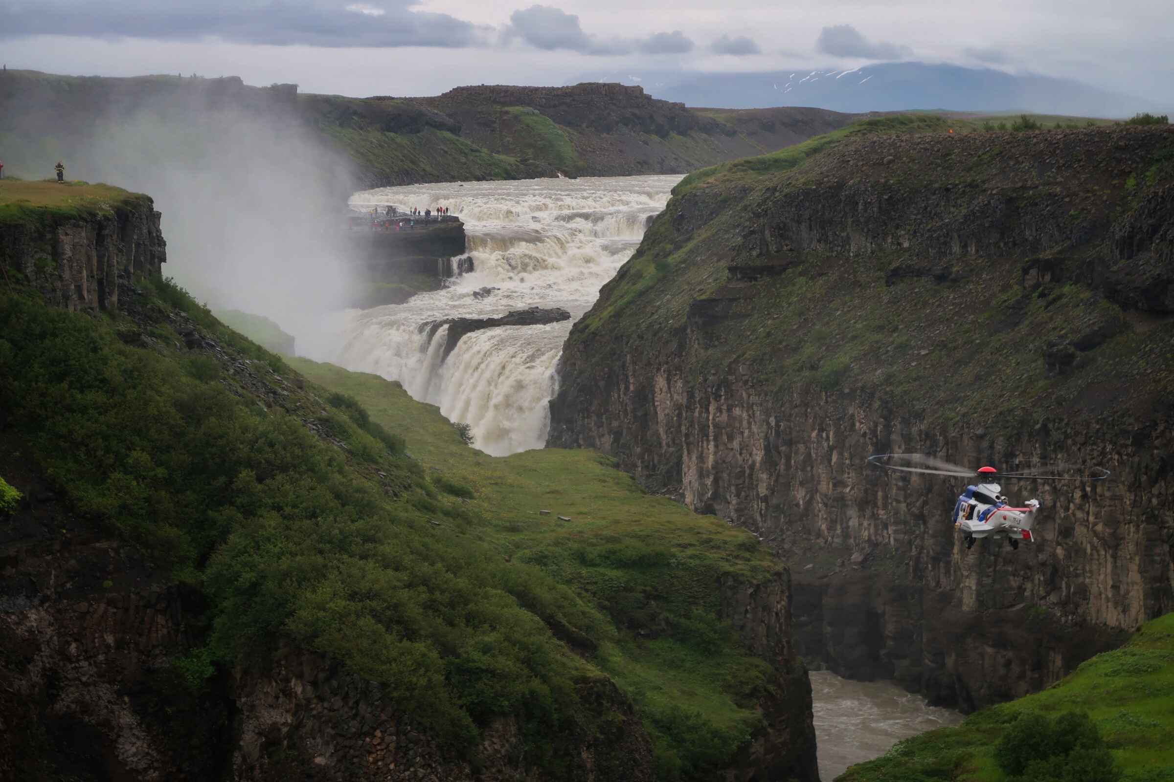 Maðurinn sem féll í Gullfoss á miðvikudag hét Nika Begades, 22 ára gamall Georgíumaður. Lögreglan segir að engar líkur séu taldar á því að Begades hafi lifað af fallið og hefur leit engan árangur borið fram til þessa.