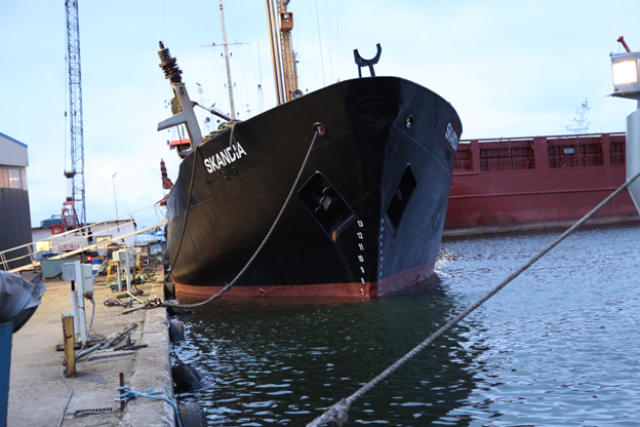 Skipstjóri Skandia kannaði aðstæður þar í morgun og er sjólag nú betra en síðustu tvo daga.
