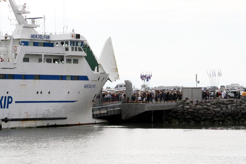 Dýpkunarskipið Perla vinnur nú að dýpkun í höfninni en hætta varð vinnu síðdegis í gær vegna hvassviðris. Vonast er til að dæling hefjist aftur á morgun en gert er ráð fyrir að verkið taki fjóra til fimm daga. Kostnaðurinn við það er um 10 milljónir króna.