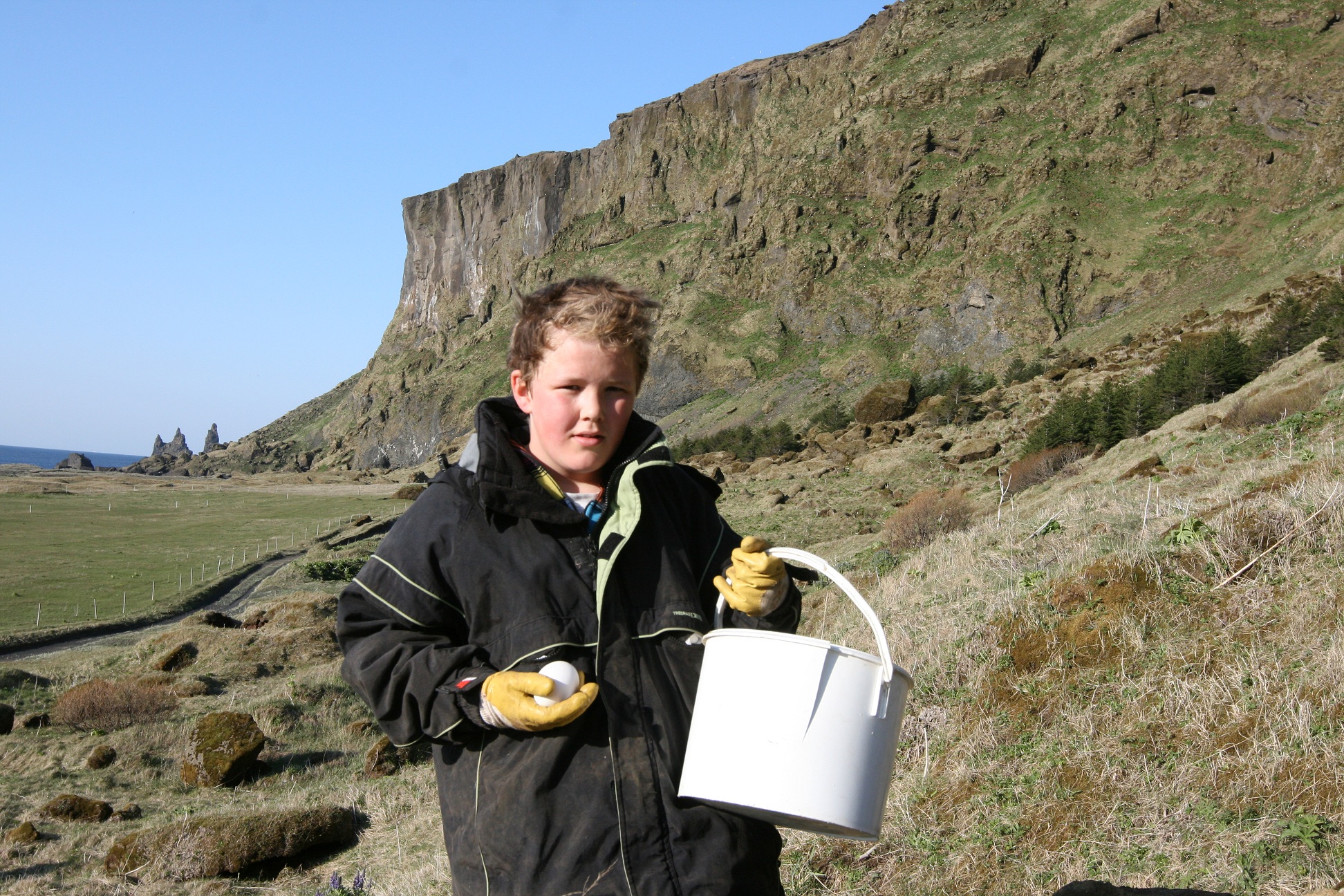 Jóhann Bragi Magnússon í Sólheimahjáleigu fór á fætur um klukkan sex í morgun til að fara með frænda sínum í fýlsegg í Reynisfjall en Jóhann þurfti að mæta í skólann klukkan átta.