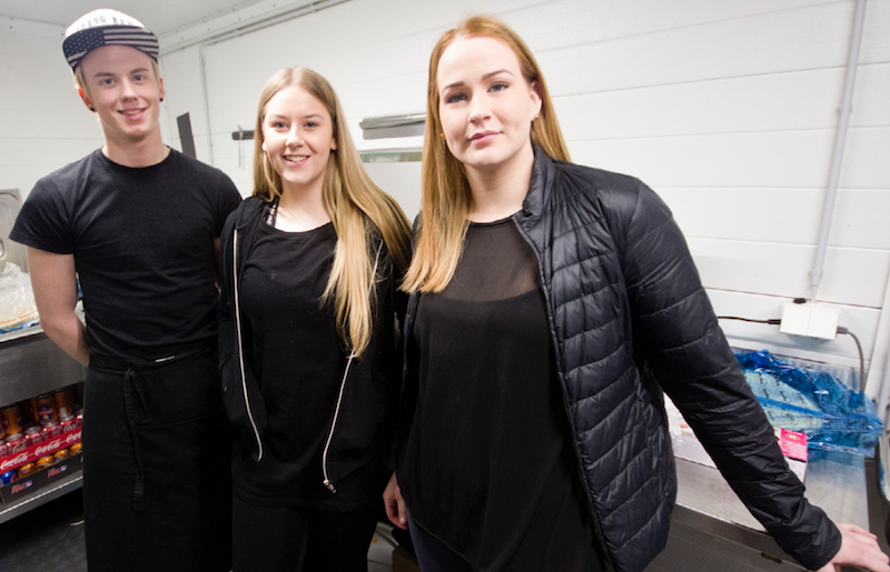 Og hvað er svo í vefjunni? Þetta eru kjúklingavefjur en í þeim er líka kál og annað grænmeti, og ýmsar sósur sem hægt er að nota til að bragðbæta vefjurnar. „Við viljum svosem ekki gera þetta sérstaklega flókið, með því að hafa þetta svona, getum við haldið niðri verðinu og aukið afgreiðsluhraðann,“ segja þau.