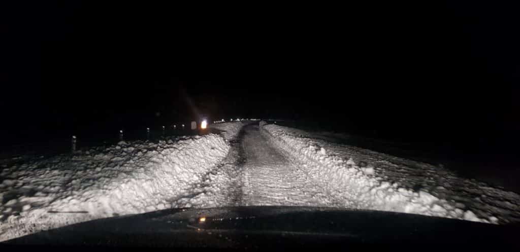 „Myndirnar eru teknar um tvöleitið um nóttina en byrjað var á að opna Þrengslin áður en hafist var handa við Hellisheiðina,“ segir Grétar sem fylgdist með aðgerðum, sá um að upplýsa vakstöð Vegagerðarinnar og skoðaði hvar þyrfti að blása. Hann lenti ekki í vandræðum sjálfur en færið var ekki fyrir neina venjulega jeppa. „Ég passaði mig á því að halda mig þar sem búið var að moka,“ segir hann glettinn og bendir á að stóran trukk hafi þurft til að flytja bílstjóra snjóblásarans upp á Hellisheiði en stóri snjóblásarinn sem notaður er í verkið er geymdur við skíðaskálann í Hveradölum. „Það tók þá tvo tíma að komast að blásaranum frá Selfossi.“