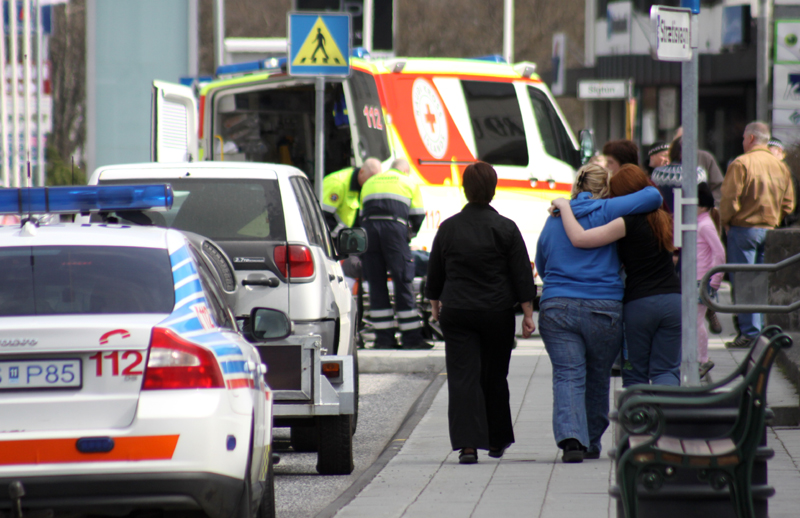Maðurinn var að ganga yfir gangbraut við Bókasafn Árborgar. Tvöföld akrein er á Austurvegi, bíll hafði stoppað fyrir honum á hægri akrein en bifreið sem kom aðvífandi á vinstri akrein ók á manninn. Betur fór en á horfðist því samkvæmt upplýsingum frá lögreglu reyndust meiðsli mannsins minni en í fyrstu var talið.
