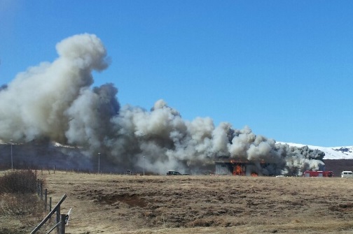 Eldsins varð vart um klukkan tvö eftir hádegi á miðvikudag og breiddist hratt út svo lítt varð við ráðið eftir að slökkvilið kom á staðinn.