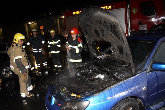 Slökkviliðsmenn voru snöggir á vettvang og slökktu eldinn en bíllinn er töluvert skemmdur.