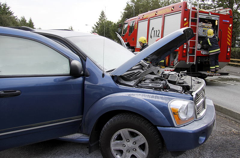 Eldur kviknaði í jeppabifreið við Tryggvagötu á Selfossi um klukkan 16:20 í dag.