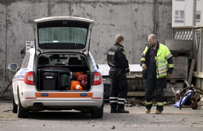 Lögreglumenn voru fljótir á vettvang og slökktu eldinn með skóflu. Slökkviliðsmenn sprautuðu vatni á glæðurnar til þess að koma í veg fyrir að eldurinn tæki sig upp aftur.