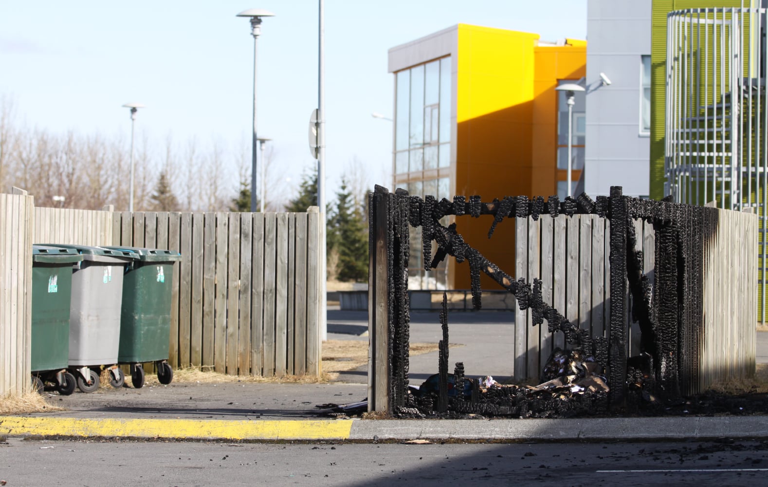 Eldurinn læsti sig í girðingu sem umlykur ruslatunnurnar og er hún ónýt að hluta eftir bálið. Ruslageymslan stendur ekki uppvið húsvegg, svo ekki var teljandi hætta á að eldur bærist í skólabygginguna.
