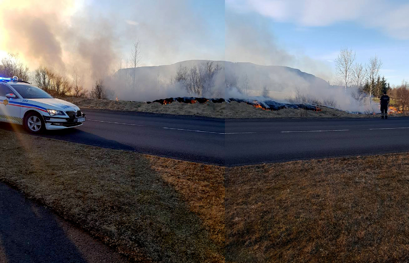 Slökkviliðsmenn frá Brunavörnum Árnessýslu slökktu í kvöld sinueld sem kveiktur var við Langholt, austan við Fjallið eina á Selfossi í kvöld.