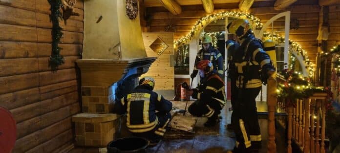 Jólahlaðborð var í Skíðaskálanum í gærkvöldi og fólk var enn í húsinu þegar eldsins varð vart. Engum varð meint af en Lárus segir það hafa verið til happs að fólk hafi verið í húsinu.