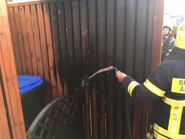 Þegar slökkviliðið kom á vettvang höfðu húsráðendur náð að slökkva eldinn með því að sprauta á hann vatni úr garðslöngu. Slökkviliðsmenn kældu vegginn og gengu úr skugga um að engar glæður væru eftir.