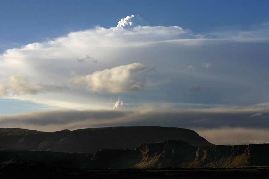 Eldvirkni í Grímsvötnum hefur verið stöðug frá því eftir hádegi í gær. Gosmökkurinn hefur verið í 5-7 km hæð.