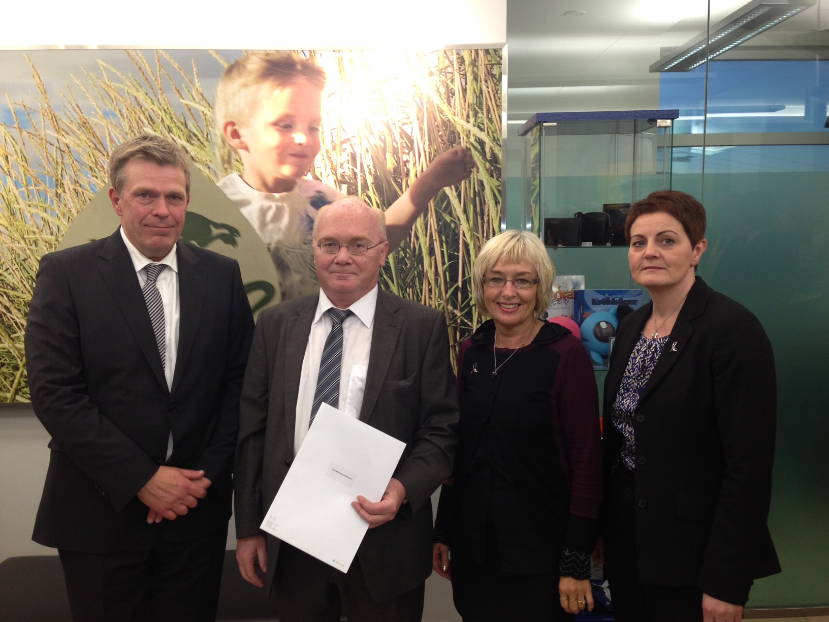 Í móttökunni færðu Höskuldur H. Ólafsson, bankastjóri Arion banka, og Sædís Íva Elíasdóttir, svæðistjóri Arion banka á Suðurlandi, Heilbrigðisstofnun Suðurlands tvær og hálfa milljón króna að gjöf til tækjakaupa. Fjármunirnir verða nýttir til kaupa á nýrnaskilunartæki sem lið í eflingu göngudeildar lyflækninga. Við gjöfinni tóku Magnús Skúlason forstjóri Heilbrigðistofnunar Suðurlands og Ester Óskarsdóttir, skrifstofustjóri stofnunarinnar.