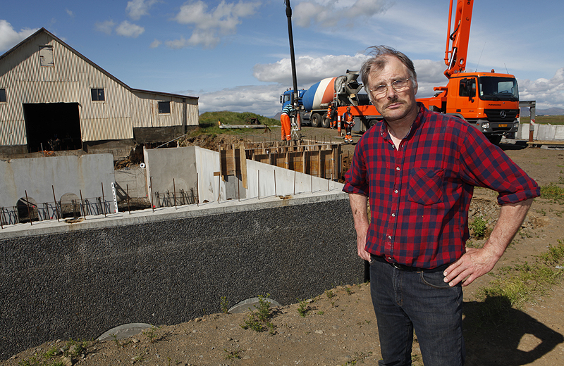 Verið er að byggja 300 fermetra fjós fyrir 50 kýr. Slík framkvæmd er fáheyrð til sveita þessi misserin. „Er ekki líka verið að byggja fjós fyrir norðan? Mér skilst það,“ segir Guðmundur.