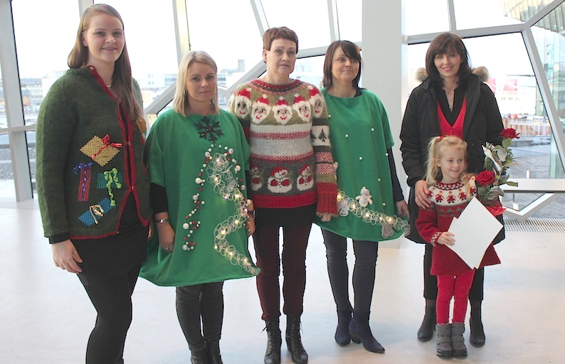 Síðastliðinn föstudag voru veitt verðlaun í fimm flokkum fyrir Jólapeysuna, sem er fjáröflunarátak Barnaheilla. Fallegasta peysan reyndist koma frá Gallerý Gimli á Stokkseyri.