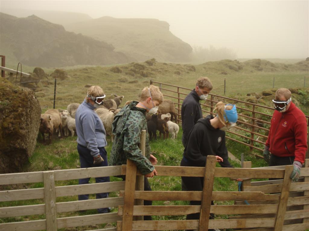 Sigurður og Jón Hjálmarssynir, frístundabændur í Vík tóku þær lambær sem komnar voru út aftur á hús í dag. Þeir nutu við það aðstoðar Sigrúnar Guðmundsdóttur, Þórs Jónssonar, Ernu Jónsdóttur og Magnúsar Orri Sveinsson, sem eru á myndinni ásamt Jóni.