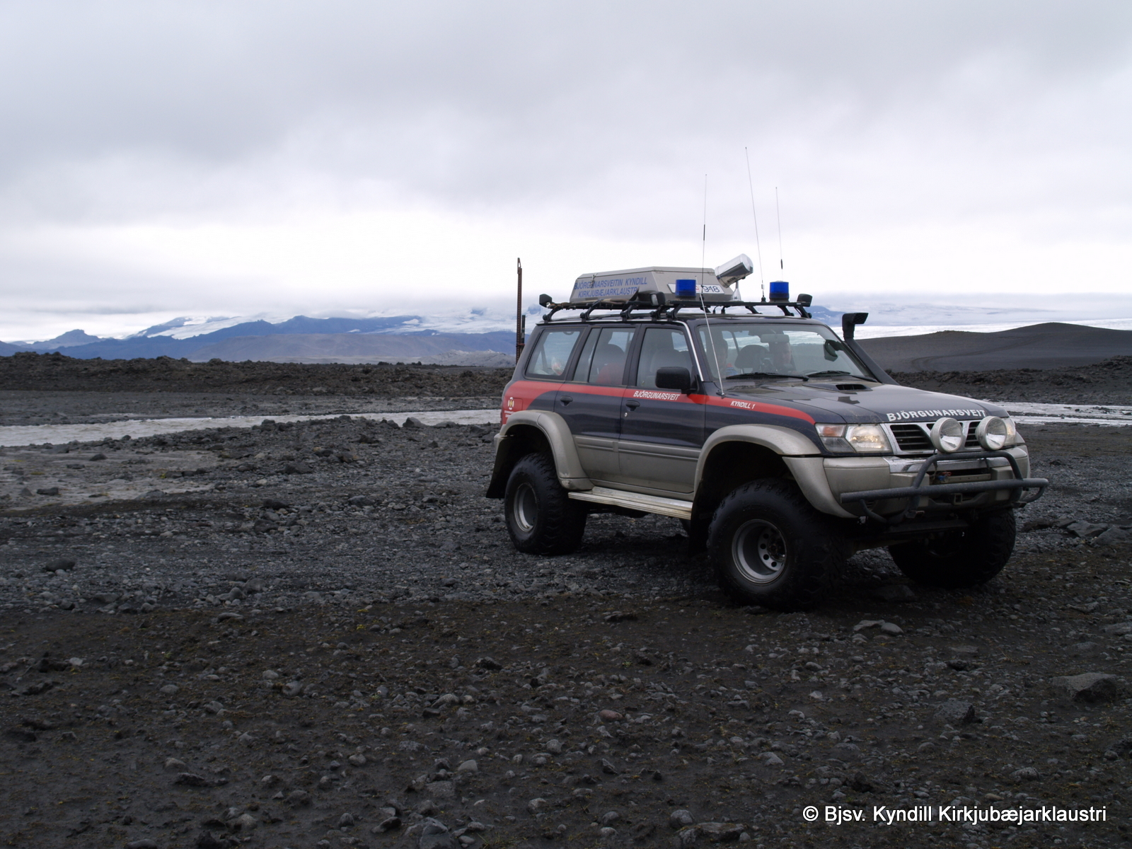 Maðurinn verður þó líklega ekki kominn til byggða fyrr en um miðnætti enda um hálendisveg að fara. Ekki var talið unnt að koma þyrlu á staðinn vegna veðurs. Frekar slæmt veður er nú á miðhálendinu eins og spáð hafði verið.
