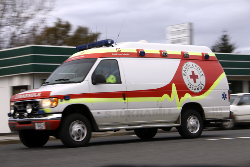Konan var flutt til Reykjavíkur með sjúkrabíl en jafnvel var talið að hún hefði nef- og kinnbeinsbrotnað.