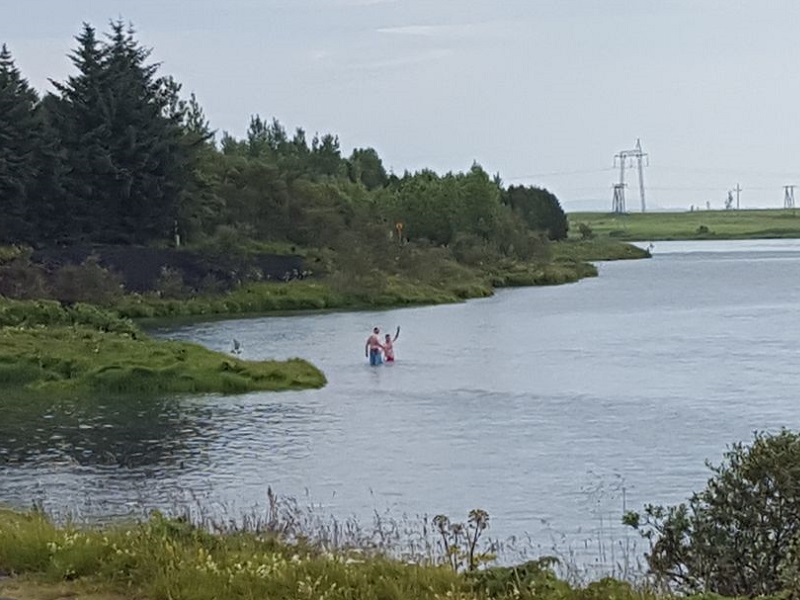 „Þetta var mjög heimskulegt hjá þeim. Áin er í örum vesti og um 10°C heit. Þó að hún virðist straumlétt þarna þá er mjög þungur straumur þarna og þetta er veiðisvæði,“ sagði Sigurjón Valgeir Hafsteinsson, í samtali við sunnlenska.is, en hann tók myndina af mönnunum í ánni. Tæpum 200 metrum neðar eru hættulegar flúðir í ánni.