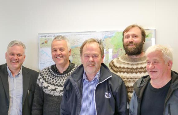 f.v. Ágúst Sigurðsson sveitarstjóri, Skarphéðinn Berg Steinarsson framkvæmdastjóri Íshesta, Kristinn Guðnason fjallkóngur á Landmannaafrétti, Þórður Freyr Gestsson sölustjóri Íshesta og Ingimar Ísleifsson fjallkóngur á Rangárvallaafrétti.