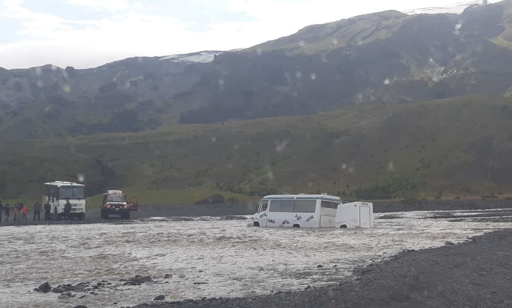 Á föstudag lentu ferðamenn í vanda á leið inn í Þórsmörk en skálaverðir í Húsadal mættu á svæðið á á dráttarvél og aðstoðuðu ferðamenn sem fest höfðu bifreið sína í Steinholtsá.
