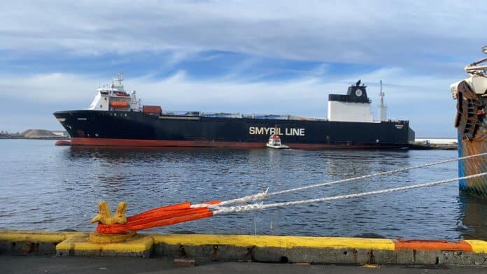 Vöruflutningaferjan Akranes og fiskiskipið Þórir SF losnuðu frá bryggju í Þorlákshöfn í morgun.