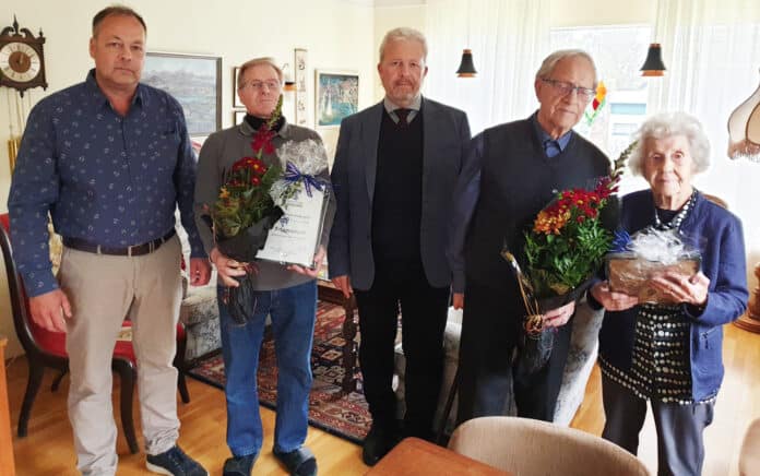 Eggert Valur Guðmundsson, formaður bæjarráðs og Gísli Halldór Halldórsson, bæjarstjóri afhentu viðurkenningarnar.