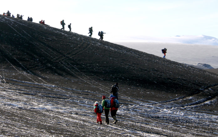 Einhver brögð voru að því í gær að fólk ætlaði að leggja í göngu á Fimmvörðuháls illa búið. Þeim sem svo var ástatt um var snúið við. Undir kvöld snerist vindur í norðanátt þannig að gosefnum rigndi yfir gönguleiðina og var henni því lokað.