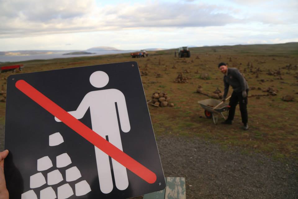 Þjóðgarðurinn lagði til skilti og nú hefur verið sett upp létt girðing á svæðinu. Dráttarvélar og ýmis verkfæri voru notuð til að fjarlægja vörðurnar en um 30-40 tonn af grjóti voru flutt á brott.
