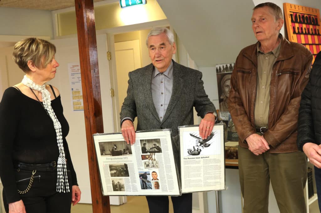 „Þau voru mjög viðamikil. Við byrjuðum eiginlega með enga peninga í höndunum en þetta endaði þannig að einvígið var rekið með hagnaði að lokum, að mig minnir sextán milljónum króna á þeim tíma, sem er í raun ótrúlegur árangur. Þessi grein sem við erum að afhenda hér í dag birtist á sínum tíma í Morgunblaðinu og er mjög athyglisverð. Ég hvet sem flesta til að koma hingað og skoða þetta,“ sagði Hilmar áður en hann afhenti Aldísi Sigfúsdóttur gjafirnar.