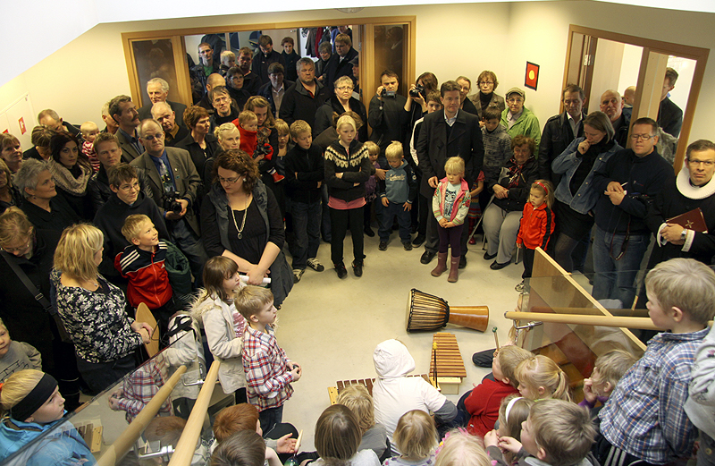 Vígsluhátíð fyrir nýja viðbyggingu Flóaskóla var haldin síðdegis í dag að viðstöddu fjölmenni.